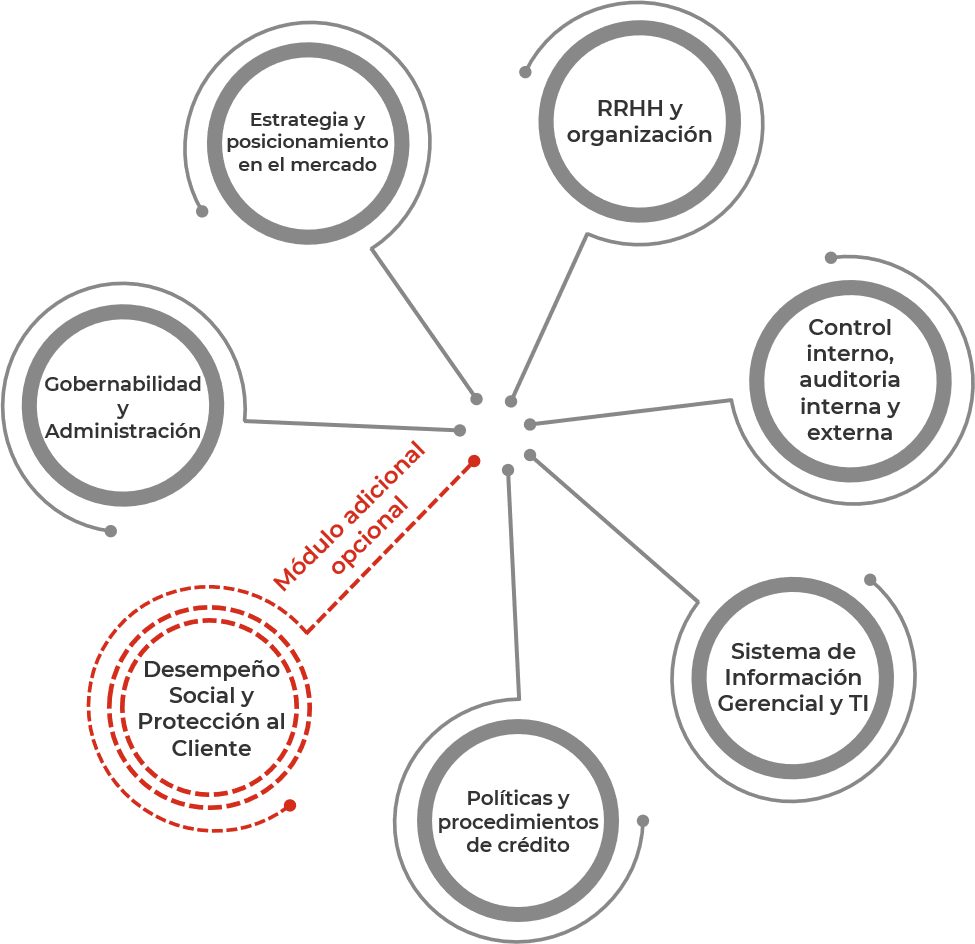 El Diagnóstico Institucional evalúa el nivel de desarrollo del proveedor de servicios financieros a través de un análisis detallado de aspectos institucionales, operaciones, sistemas y controles, y la comparación con las mejores prácticas internacionales.
